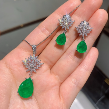 Emerald Gemstone Jewelry Set – Pendant Necklace and Earrings