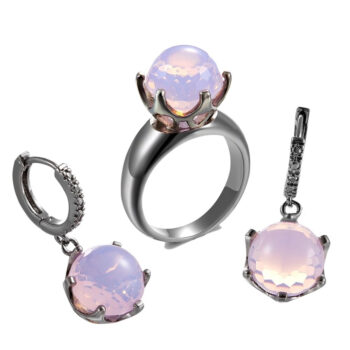 Women’s Zirconia Ring and Earrings Set with Rose Stone
